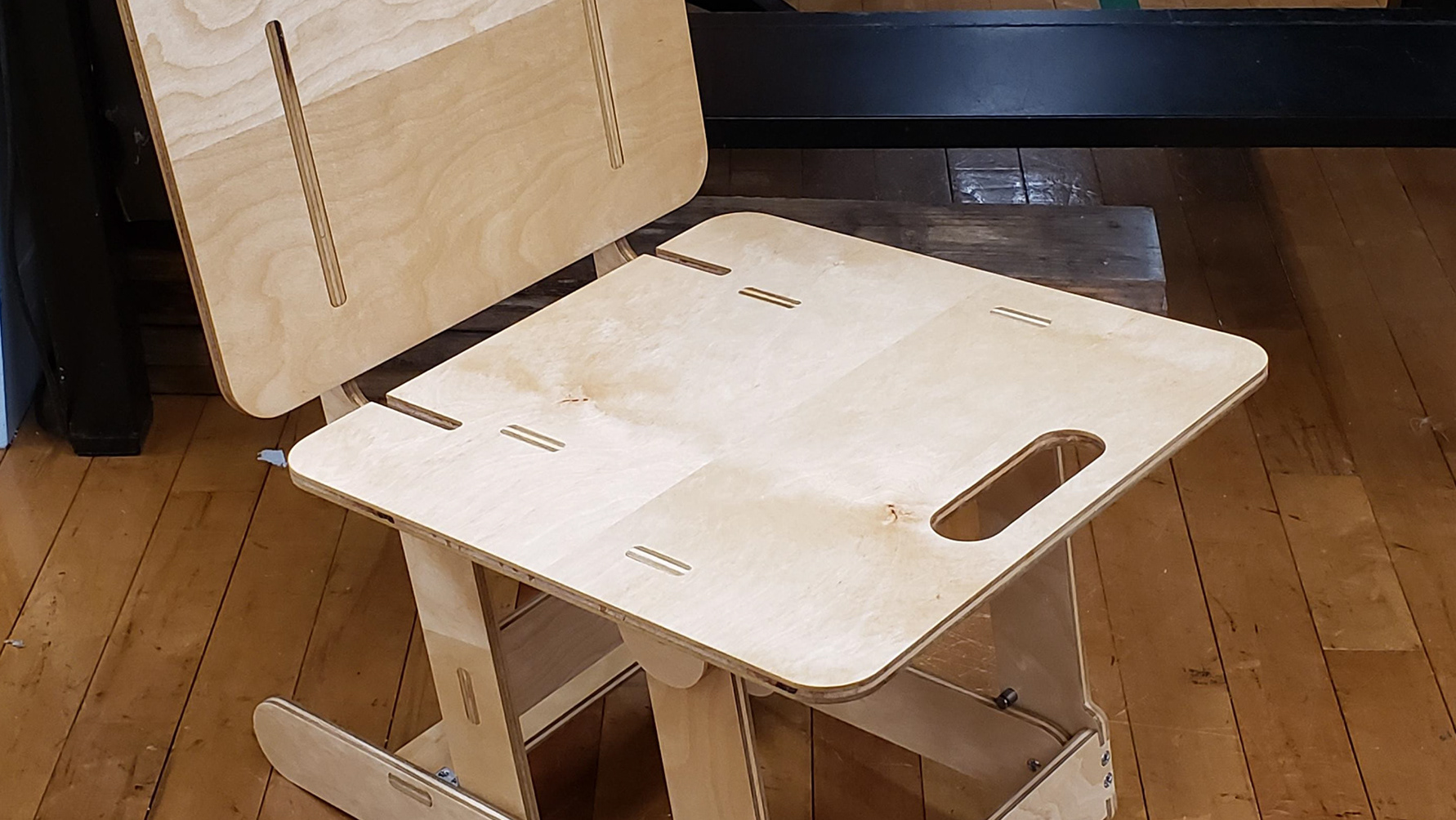 To accurately represent the space usage across multiple pods I laser cut scale wood parts of my interlocking door design, as well as the leg assemblies, and added these to the model.